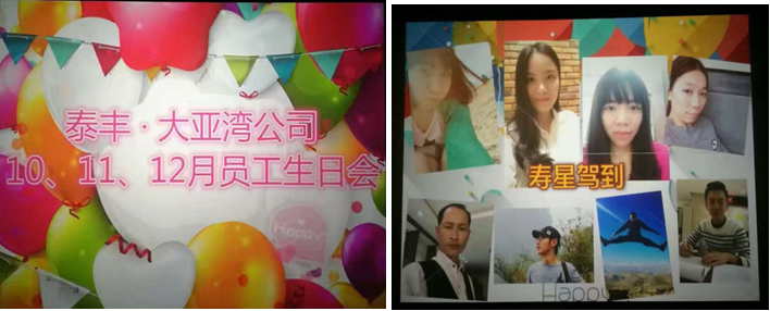 12月8日晚,大亞灣區(qū)域在惠州世紀(jì)城電影院舉行了第三季度員工生日會(huì)。本次活動(dòng)由區(qū)域副總裁李炎超總主持,并為壽星們贈(zèng)送禮物,獻(xiàn)上祝福。